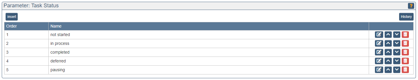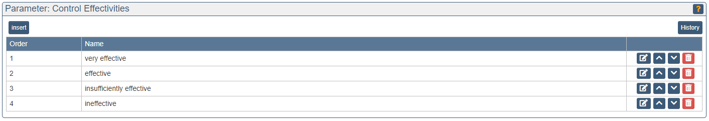 Parameters are used to set the properties of the individual objects (e.g. impact classes of risks or priorities of measures).